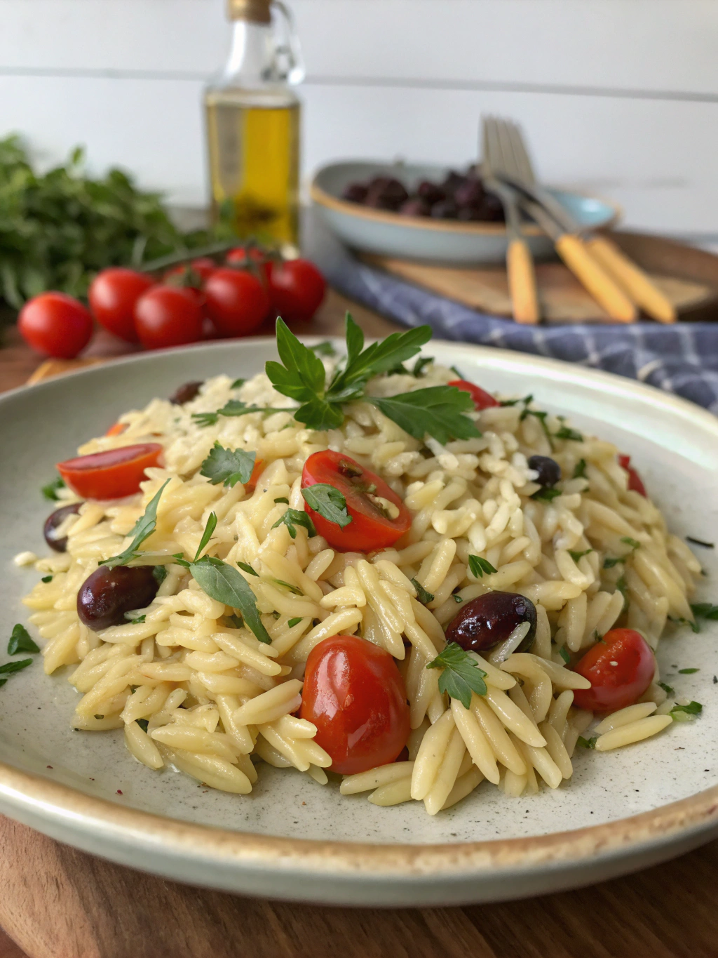 - Low-Glycemic: Reduce orzo slightly and increase vegetables